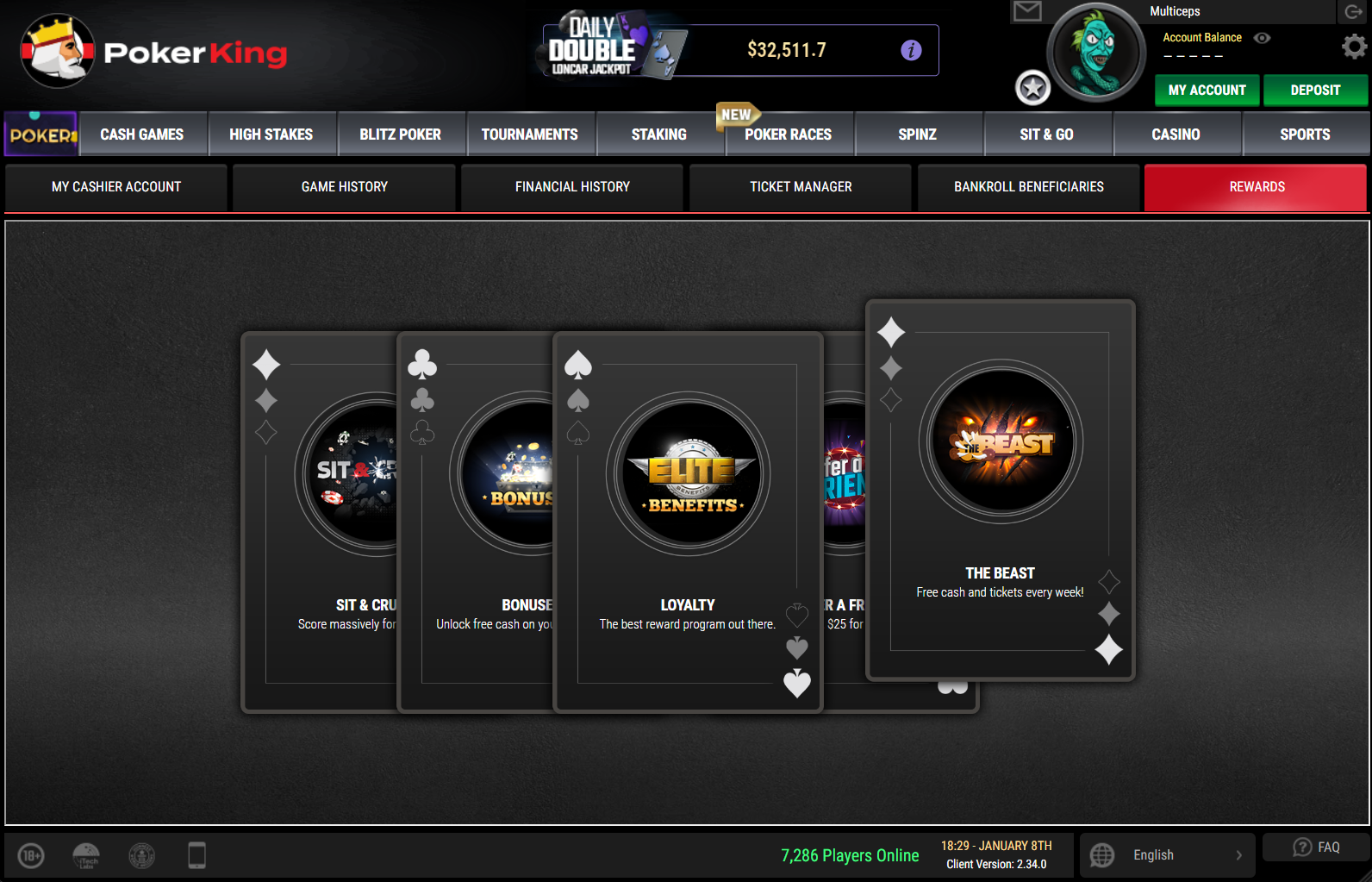 На PokerKing действует три уникальных еженедельных лидерборда: The Beast для кешевиков NLH, Beast Blitz для кешевиков Blitz Poker и Sit&Crush для игроков Sit&Go. Найти их можно в лобби PokerKing —> My Account —> Rewards.
