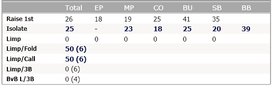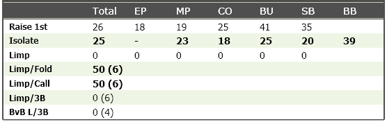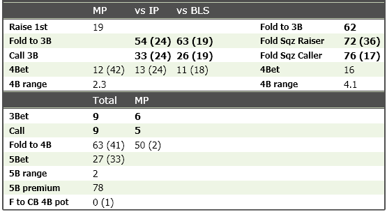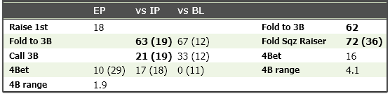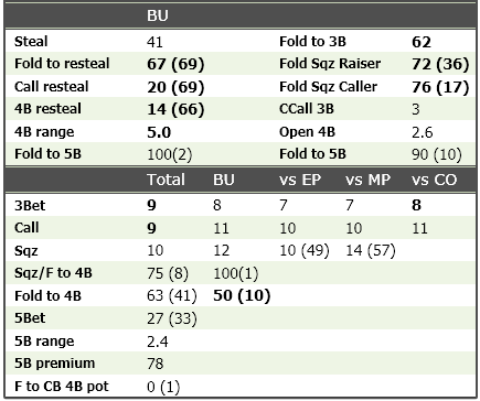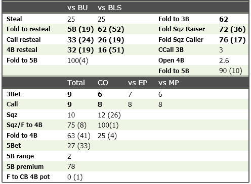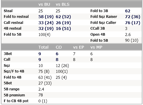 Идея 3. Когда меня 3бетят, мне интересно знать не только 3бет, но и как широко враг колил бы в этой ситуации. Обычно я и смотрю эти статы вместе. Согласно 3му принципу, они должны быть рядом. Мне удалось это воплотить.