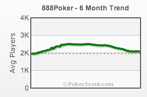 Сеть 888 уверенно занимает пятую строчку по посещаемости, не смотря на продолжительную борьбу за рекреационных игроков. С одной стороны, регуляры были ограничены в возможности играть большое количество столов, а так же бонусной программой с высшей ступенью выплат в 36%. В то время как начинающие и рекрационные игроки получали все больше плюшек. Благодаря этому, в комнате сформировалось привлекательное поле с большим количеством начинающих и слабых игроков. Хороший выбор столов и турниров способствует плюсовой игре. В этом году, даже промо на WSOP от 888 ориентировано на начинающих игроков, а значит летом поле будет еще комфомортнее.