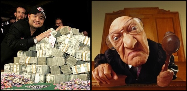 Мистер Янг было уже прикинулся эмигрантом и принялся на ломанном корейском выговаривать "Ай донт спик инглишь бич", но его спалил 14-каратный золотой браслет WSOP и увесистая бриллиантовая цепочка с кулоном в виде туза червей, которые он всегда носил на своем чемпионском теле. В общем пока Джерри, обхватив коленки руками, плакал в углу ванной комнаты, нaлoговики, помимо трофеев WSOP, изъяли еще и пару золотых цепочек, несколько наручных часов с сапфирами, а также серебряный нагрудник фирмы Hmong, после чего выставили все это добро на аукцион. Так что золотую побрякушку WSOP сейчас можно купить всего за $6,389.40.