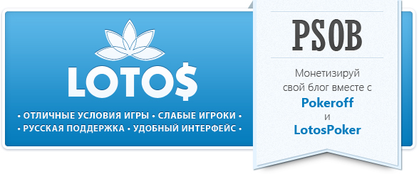 Покерофф дает возможность выиграть не только за покерным столом. Участвуя в акции PSOB (Pokeroff Series of Blogging), проводимой Pokeroff при поддержке LotosPoker, вы сможете серьезно увеличить свой банкролл благодаря яркому и интересному блогу.