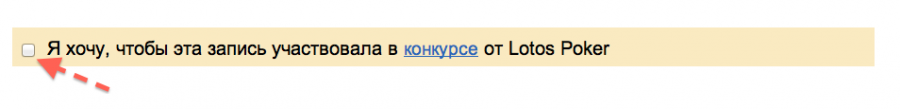 Для участия в акции вам достаточно выразить свое желание сделав один клик на странице PSOB или в своем профиле. После этого к вашим записям автоматически будет добавляться баннер конкурса, а оценки записей будут влиять на ваш рейтинг. Добавить запись к конкурсу можно прямо в момент ее создания: