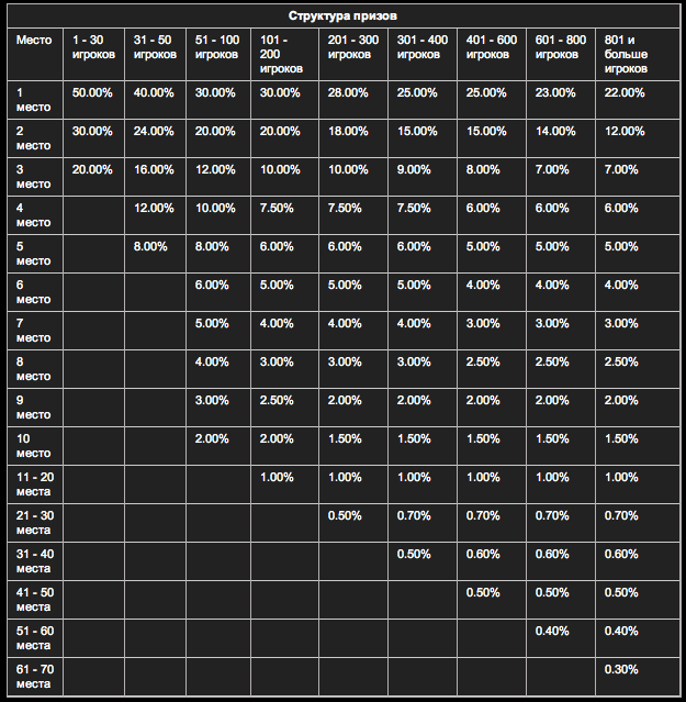 Распределение призового фонда будет происходить по стандартной схеме турниров LotosPoker: