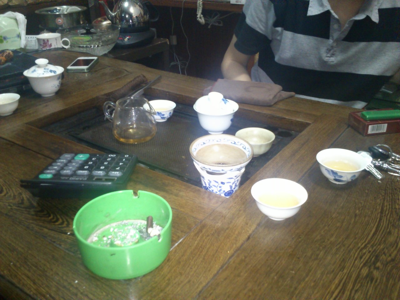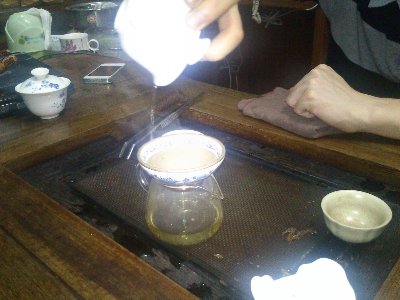 Китаец выдал всем посуду и начал приготовления к чаепитию. Для начала было предложено попробовать 10-и летний пуэр (кстати по китайски его название «пуэа»).