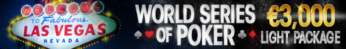 Похожие условия присутствуют и в “€3,000 Light Пакет”. Выиграв этот пакет, вы сами выбираете любой ивент в рамках Мировой Серии Покера 2013 года стоимостью $1,500 и получаете €1,800 на транспортные расходы. Схема акции также мало чем отличается от основного предложения рума.