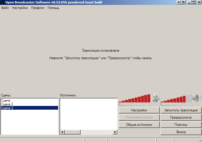 Вы можете настроить сцены и источники в режиме “предварительный просмотр”, который покажет вам в окне OBS’а то, как будет выглядеть ваш стрим для зрителей. После настройки вы можете нажать кнопочку “Запустить трансляцию” и вас увидит весь мир. ;)