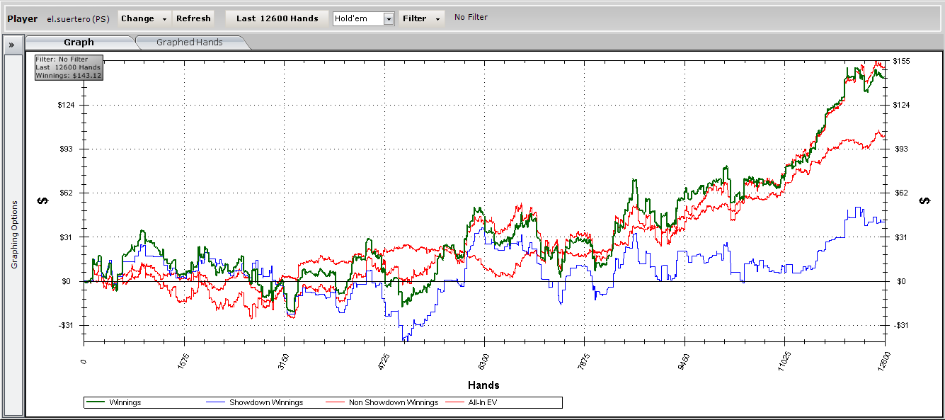 Так вот, к чему это всё. Некоторые моменты из заметок с тренировок я планирую публиковать в своём блоге (предварительно переведу на русский, конечно). А делать это я буду в рамках нашего с Тортом марафона, ради которого я и приехал снова к нему в город на, возможно, пару недель (в зависимости от того, как пойдут дела). Ну а пока, чтобы немного разбавить всю эту простыню текста, выложу-ка по сложившейся традиции свой, несомненно, аповый график отыгранных 12к+ рук на лимите NL10 после занятий с Верниром: