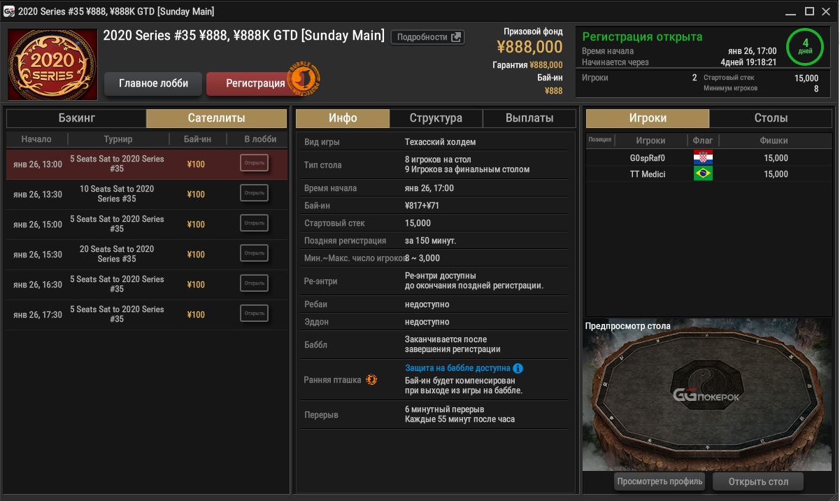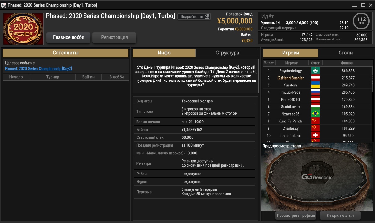 Кроме прямого входа в Day 1, на GGПокерОК есть сателлиты в первую фазу за $42 — в них гарантируется по 3, 5 и 8 билетов, в зависимости от структуры турнира, в который вы будете пробиваться.