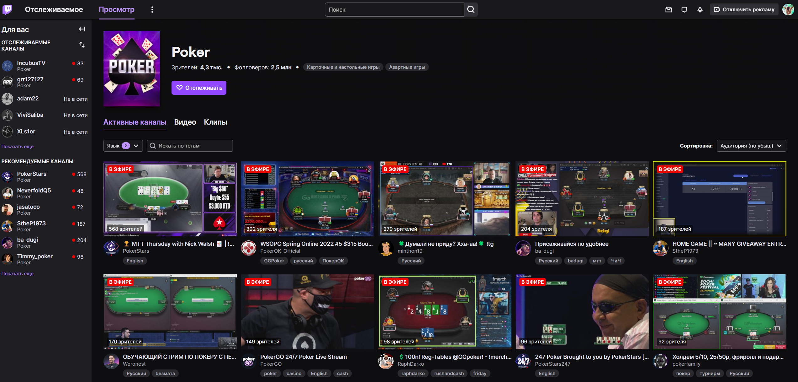 Для лучшей оценки альтернативных сервисов важно понимать, насколько раздел «Poker» популярен и удобен на Twitch.