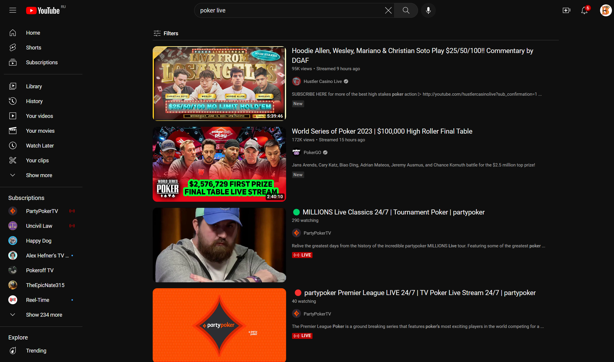 Несмотря на недостатки платформы, многие покерные стримеры уже давно практикуют проведение эфиров на YouTube, а подавляющее большинство годами выкладывают туда другой контент — например: