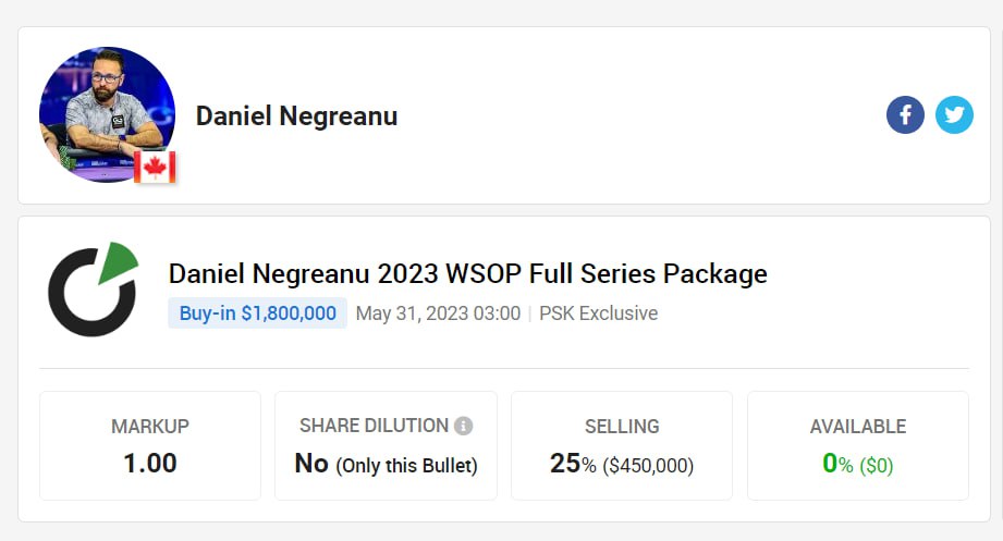 Даниэль Негреану (Daniel Negreanu) выставил на продажу доли пакетом на сумму $450K — их всех размели как горячие пирожки всего за 40 минут.