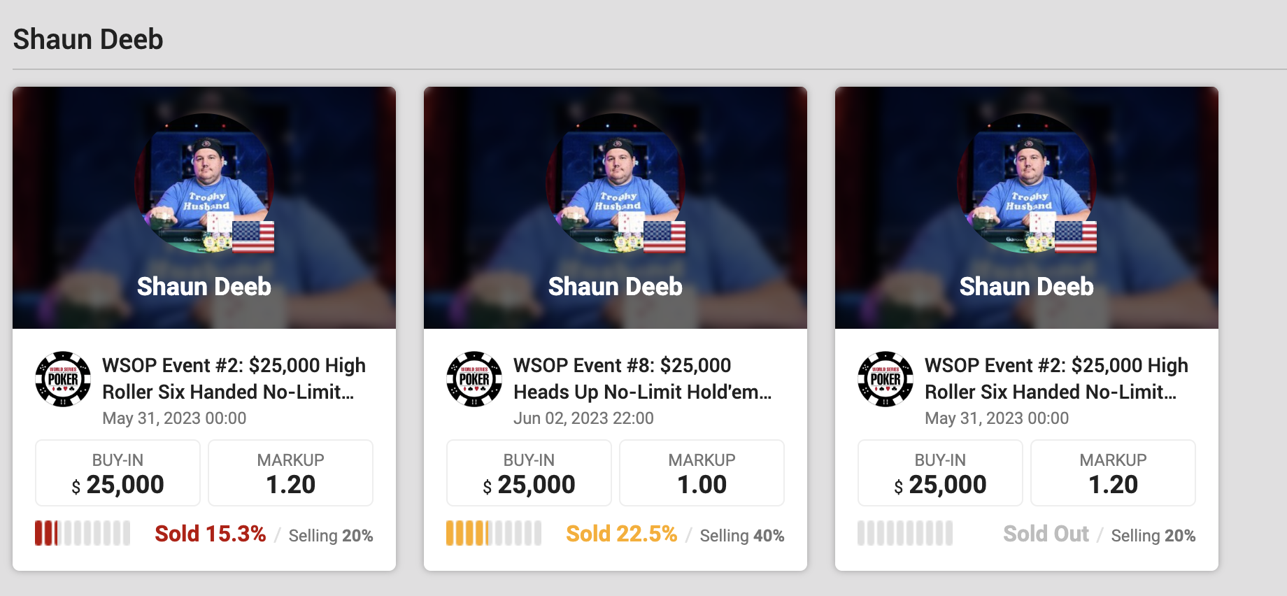 Шон Диб (Shaun Deeb) выставил доли в турниры по $25K.