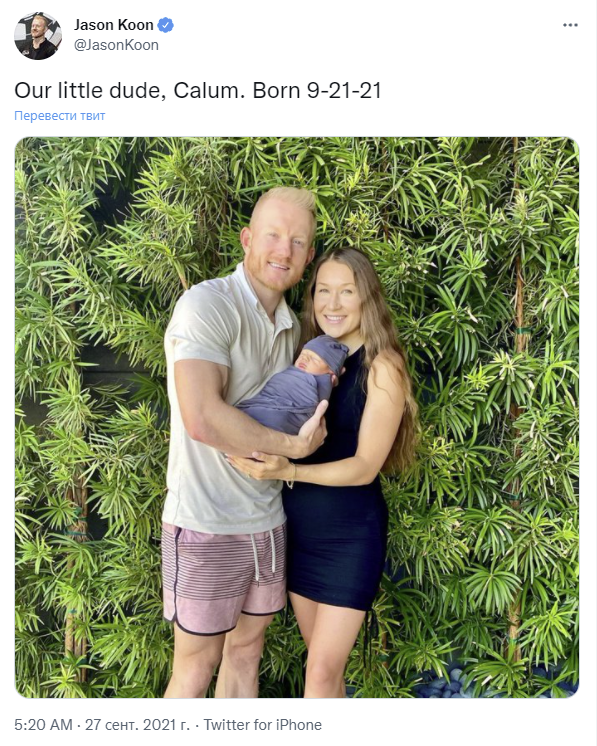 Джейсон проживает в Канаде, женат, в конце сентября стал отцом.