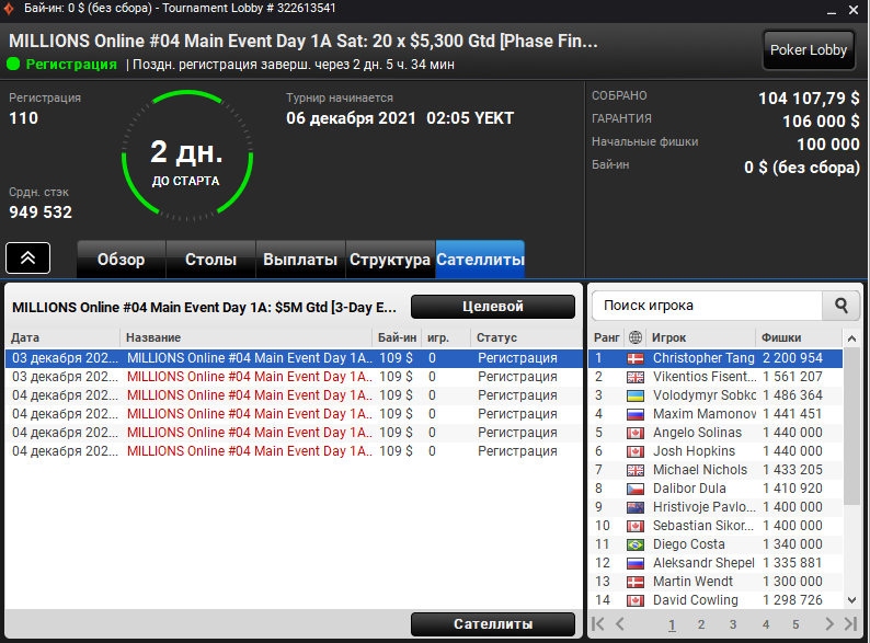 | 12-30 декабря | #04 Main Event | $5300 | $5M |