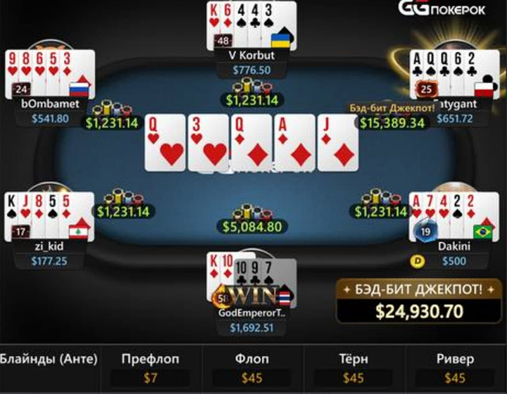 С 13 сентября на GGПОКЕРОК появился бэд бит джекпот за кеш-столами NLH и PLO (в том числе Rush & Cash), PLO5 и Short Deck. Джекпот падает при проигрыше от каре Двоек в NLH и каре Валетов в других дисциплинах.
