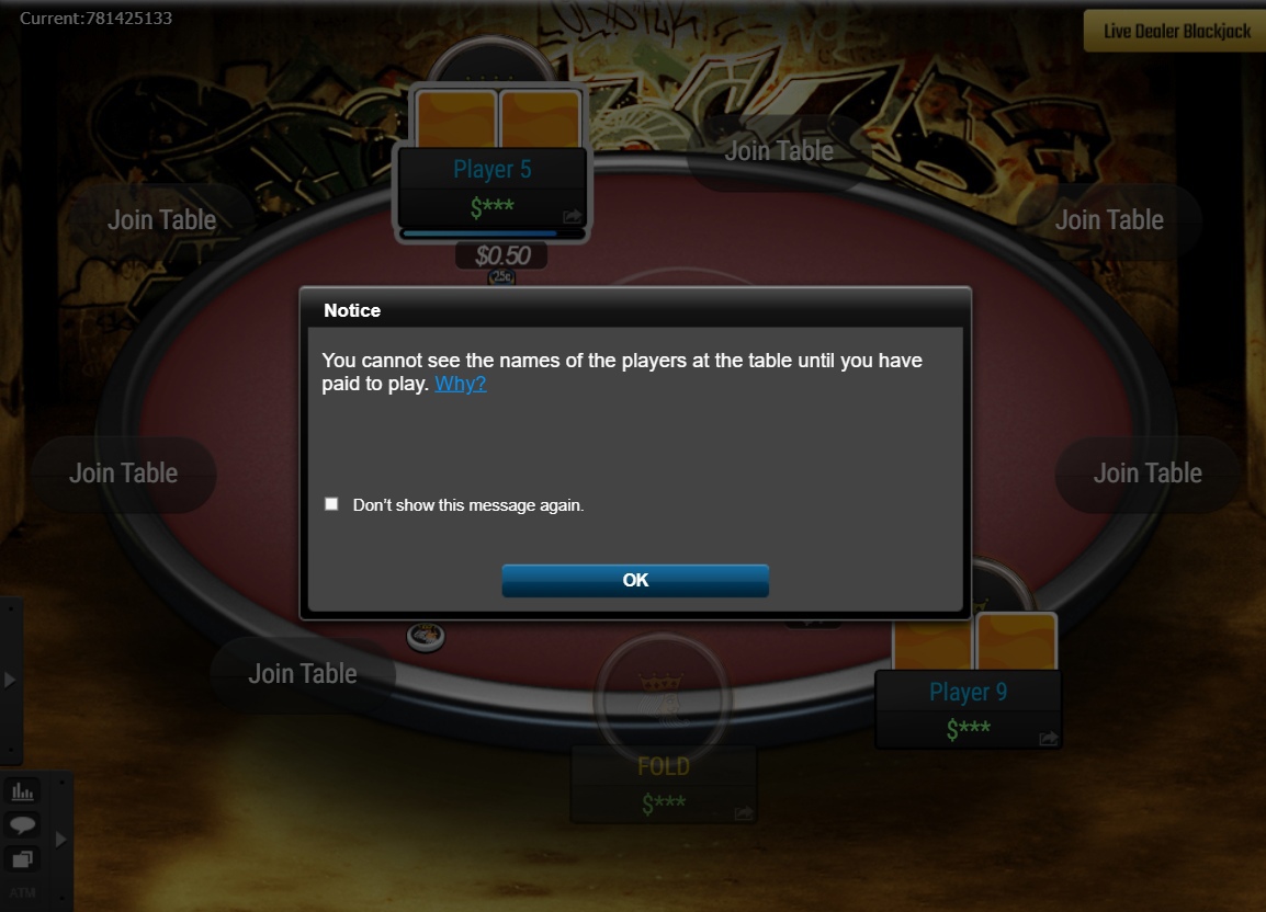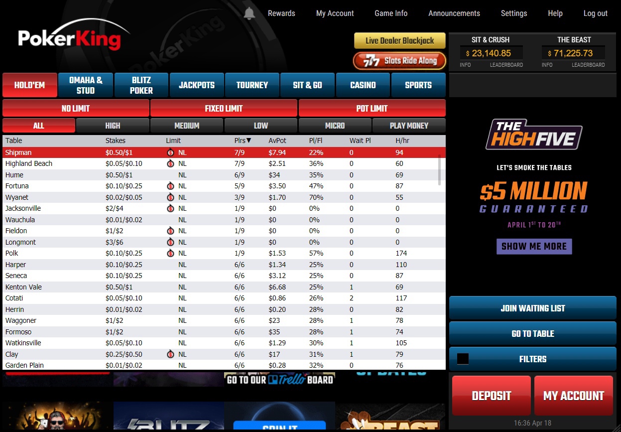Раньше увидеть список людей за столом и в листе ожидания (waiting list) можно было в лобби справа от списка столов при нажатии на интересующий лимит. Теперь вместо списка в руме отображается информация об актуальной акции или идущей в данный момент времени серии. Например, на скриншоте ниже размещен анонс The High Five — серии для представителей субкультуры «420».
