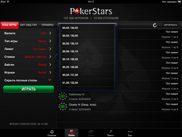 Выбор лимитов безграничен ) любой лимит на ПокерСтарс доступен и в мобильном приложении.