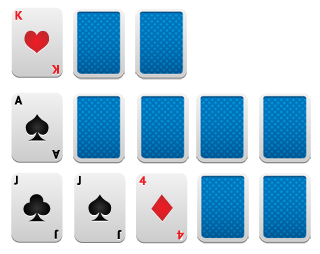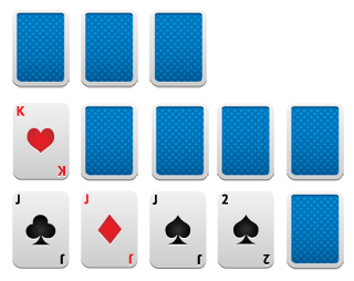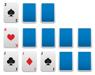 , что вы делаете? Валеты – вниз, двойку – наверх (лишь бы избавиться от неё), а короля в середину. Проще один раз увидеть.