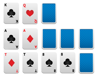 Идеалом такого расклада является: две пары на нижней линии, сильная пара на средней и хороший потенциал сильной пары наверху. Предположим вот такой вариант.