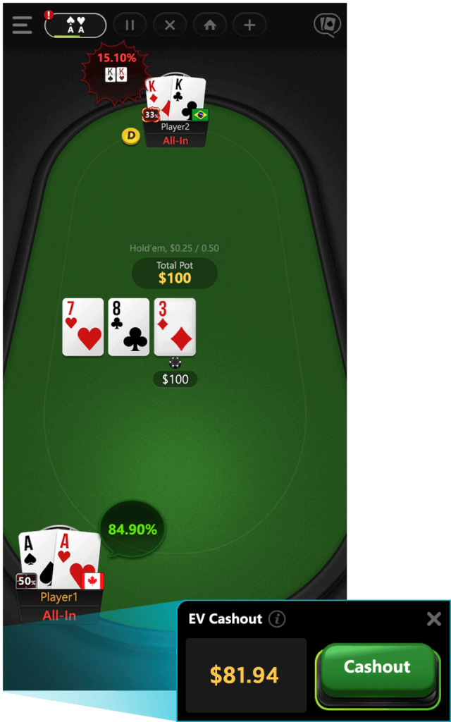На короткой дистанции EV Cashout может быть оправдан, если у вас проблемы с тильтом или если вы играете на более высоких лимитах, нежели чем обычно.