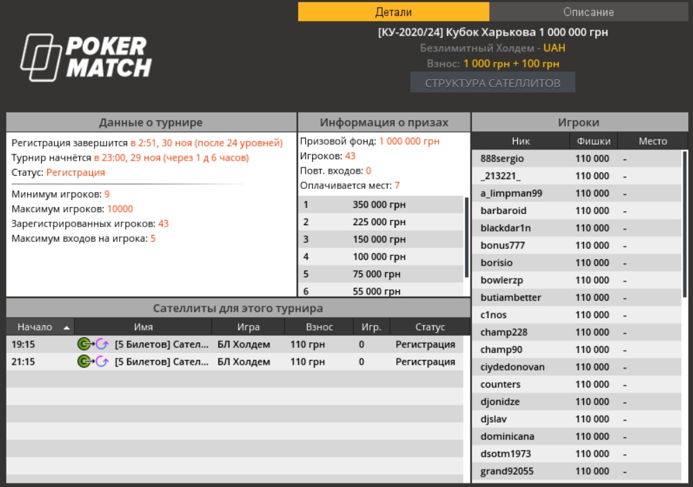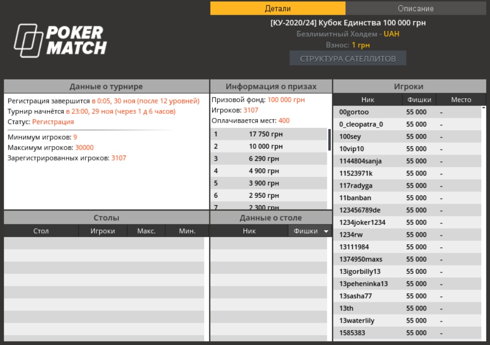 Также 29 ноября пройдет завершающий Кубок Единства с бай-ином 1 гривна и гарантией 100К гривен. Старт — в 21:00 МСК.