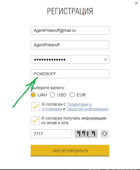 Ответ на поверхности — нужно зарегистрироваться. Регистрация от нашего сайта с промо-кодом POKEROFF