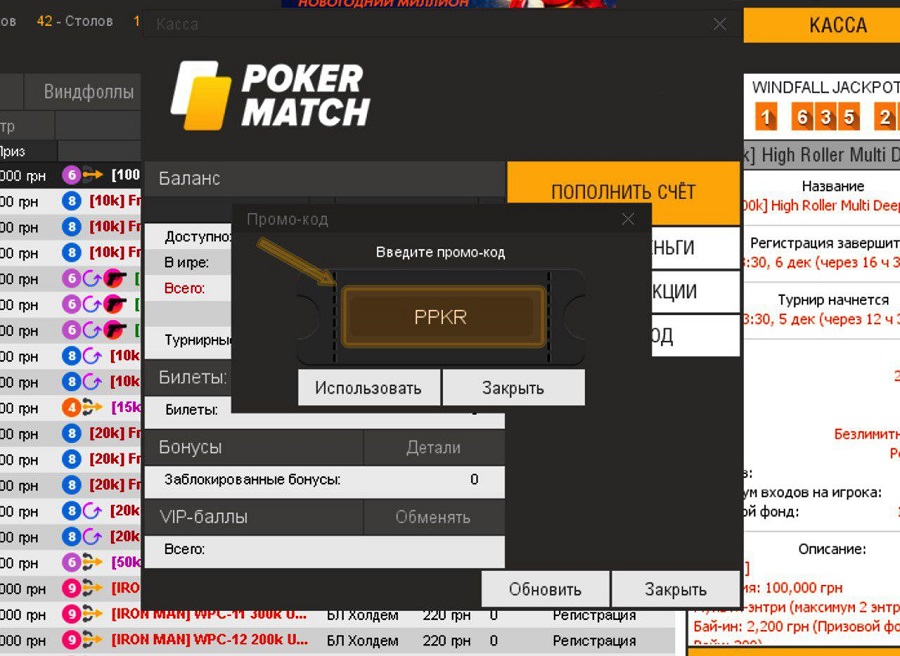 Участие в розыгрыше ПокерМатч, подробная инструкция