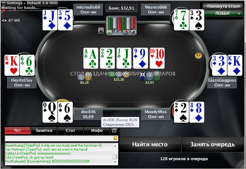 10миллиардная раздача сейчас онлайн разыгрывается на нл5, минимальный приз 10000$, победителю не менее 100000$, за столом русский игрок doc836 кастанем ему удачи. Это пользователь цигантима Dynamovec в основном играет мтт, искал беккинг, сейчас кажется получит банкролл. Затащил минусовый грек microulis69 усилившись до пары и получив приз 103.800$ , наш же получил 13440$. Так же за столом был игрок из беларуси, рег этих лимитов GiassGagguas получив 13.360$