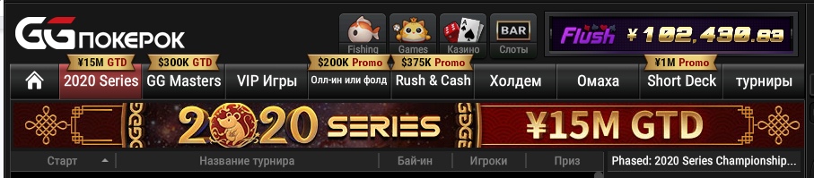 Серия будет состоять из нескольких групп турниров. Все бай-ины будут в юанях (¥). Символично, что бай-ин фазовых турниров составляет ¥2,020. И хотя серия официально еще не началась, фазовые турниры уже идут — вы можете найти их в лобби GGПокерОК в специальной вкладке.