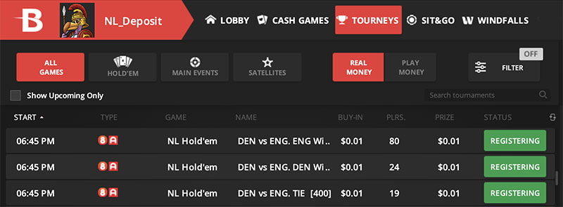 Например, сегодня в 19:00 МСК стартует матч Дания — Англия. В лобби добавлены три турнира за 1 цент (регистрация открыта до 18:45 МСК):