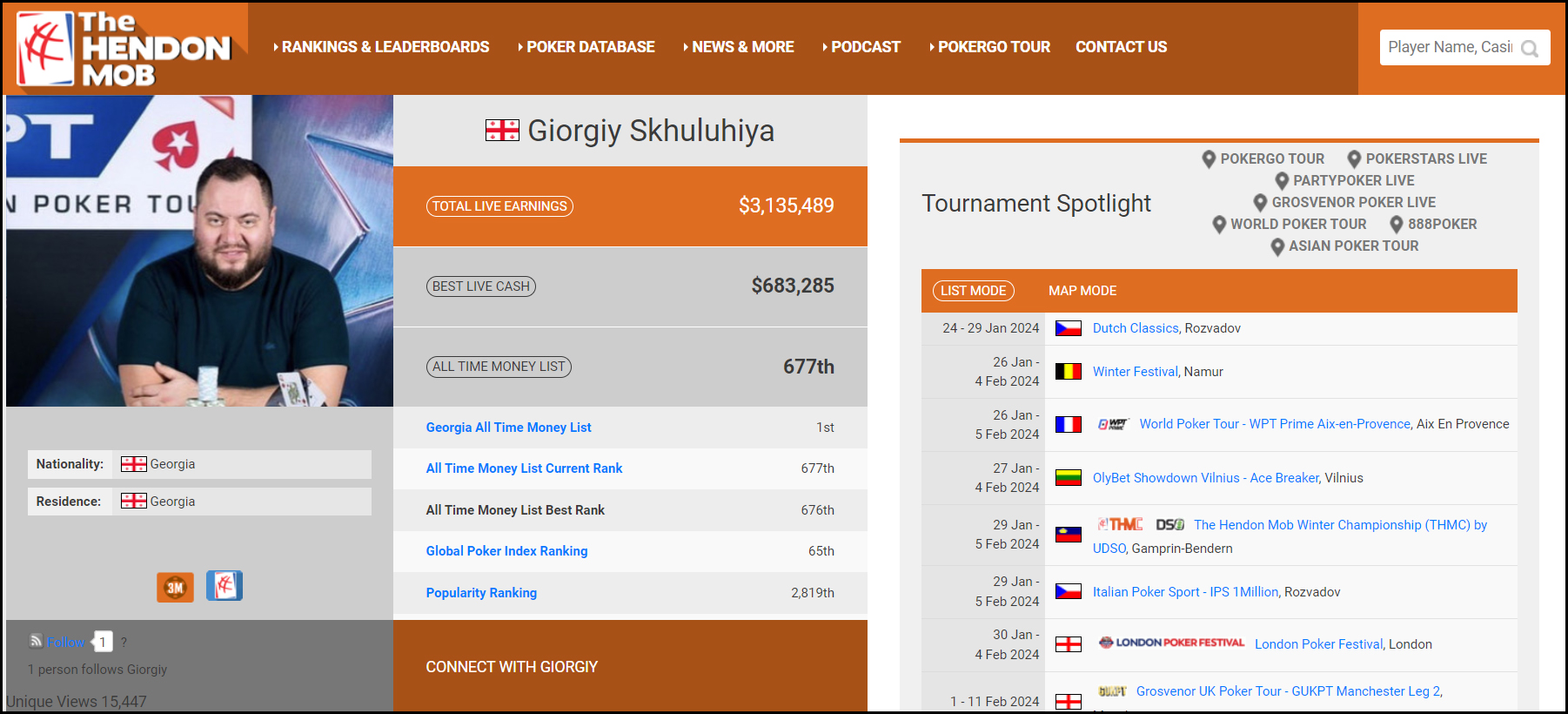 В-третьих, на TheHendonMob часто можно увидеть путаницу со странами игроков. Например, Гия Схулухия из года в год попадает в число граждан Грузии, хотя у него гражданство РФ, а от Грузии только ФИО.