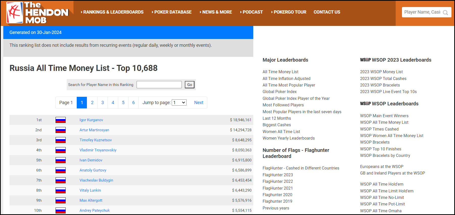 Во-вторых, сайт считает только призовые — без количества входов, без сопутствующих затрат. Соответственно, делать выводы о заработке того или иного игрока по нему довольно затруднительно.