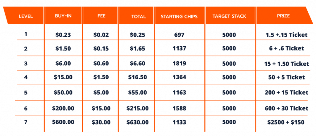 Чтобы попасть в турнир-миллионник с бай-ином $215, нужно последовательно выиграть 5 турниров Cyclone Blitz, в турнир с бай-ном $630 — 6 турниров Cyclone Blitz.