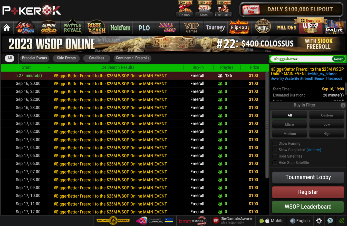 Для Главного события 15 сентября ПокерОК добавил в расписание особые сателлиты #BiggerBetter Freeroll. Они стартуют каждый час и ведут в $4 Step, откуда можно попасть в прямой сателлит $50 Mega с гарантией 10 мест во флайт Мейна. В сутки можно сыграть один фриролл.