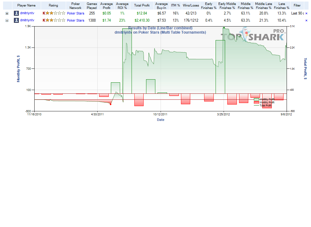 Я играю в покер около двух с половиной лет, начинал с депозита в 100$ на Poker Stars, каким-то чудом выиграл несколько турниров (играл MTT 1-3$) и за пару месяцев увеличил свой БР до 2500$. Но тогда, два года назад я представления не имел о дисперсии, даунстриках и вообще, мне казалось, что заносить турниры на первое-второе место с периодичностью раз-два за две недели это нормально. Я был абсолютно убежден, что стоит мне чуть серьезнее отнестись к своей игре и уделять ей больше времени, мой профит будет составлять как минимум 4-5к$ в месяц. Тут стоит отметить, что играл я тогда за двумя столами максимум и уделял покеру не более пары часов в день (конечно если не проходил далеко в одном из играемых турниров).