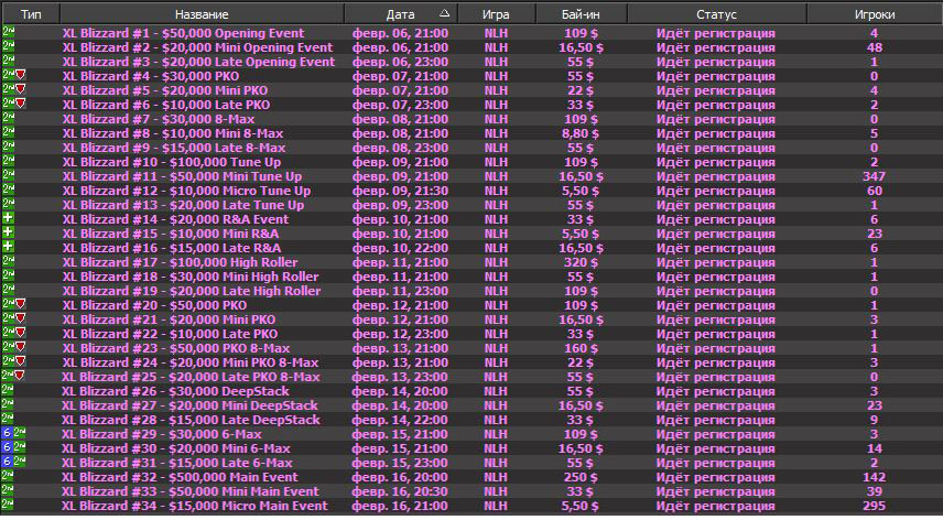 Попасть в Main Event XL Blizzard и Mini Tune Up Event (пройдёт 9 февраля в 21:00, бай-ин $16.50) можно через ежедневные отборочные фрироллы (только для депозиторов):