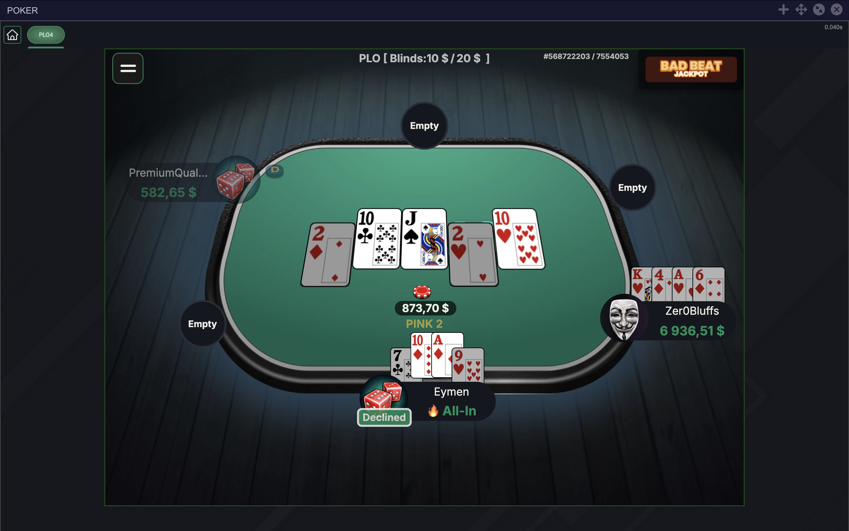 - В Омахе — за проигрыш раздачи с комбинацией от 2222 или лучше