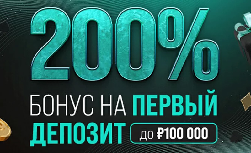 - Бонус 200% на депозит от ₽10,000 до ₽100,000