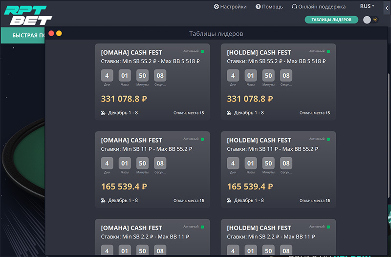 Причина 4: Лидерборд Cash Fest на ₽4M в месяц среди кеш-игроков NLHE и PLO