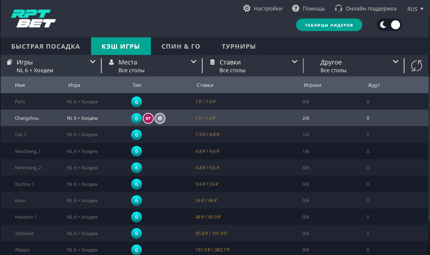 | RPTbet | От ₽1/2 до ₽200/400 | Нет | Да |