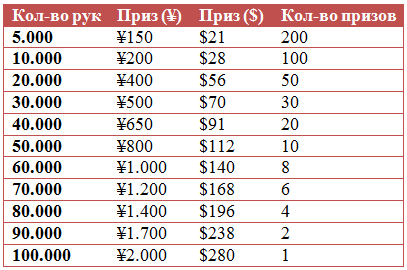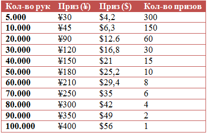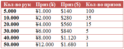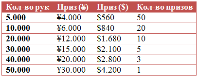 Лидерборд ¥50 ($7) на сумму ¥605.000 ($84.700)