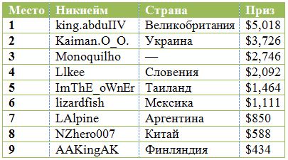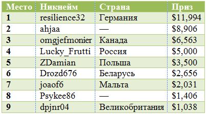 Результаты финального стола 888poker XL Blizzard #3 - $20.000 Late Opening Event