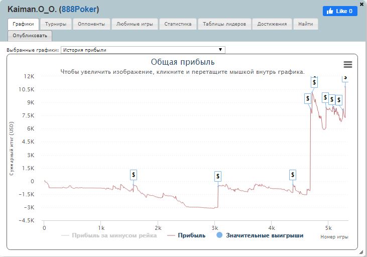 Не всегда игра «от души» и вера в себя (обратите внимание на динамику выигрышей по месяцам под графиком справа) приносит плоды. Особенно в покере.