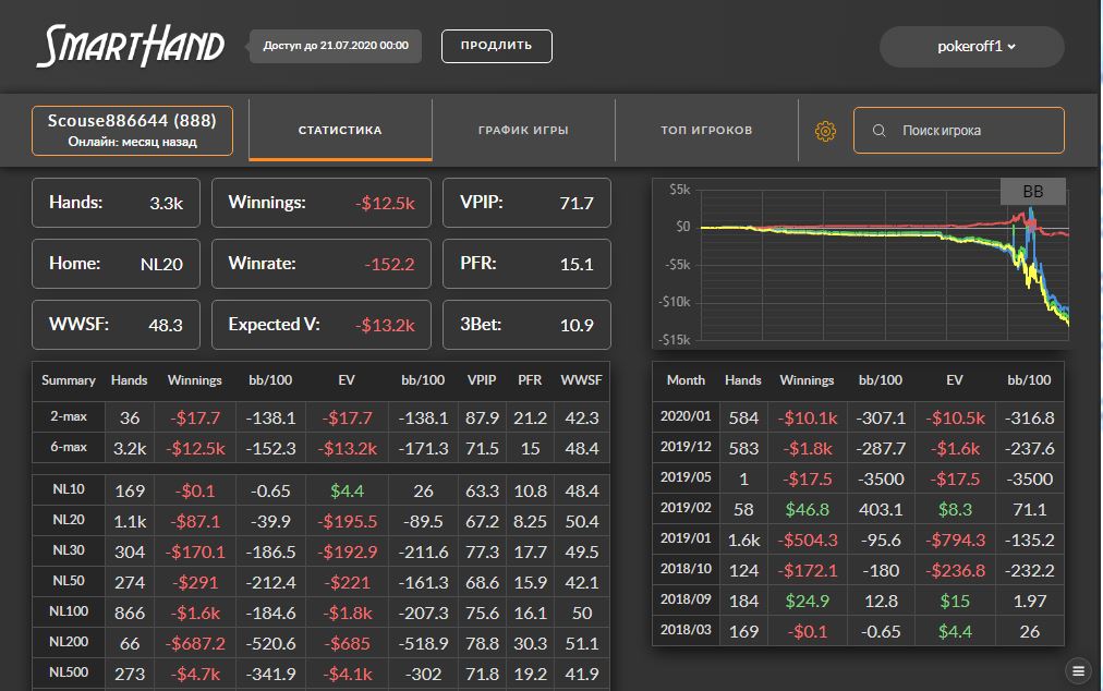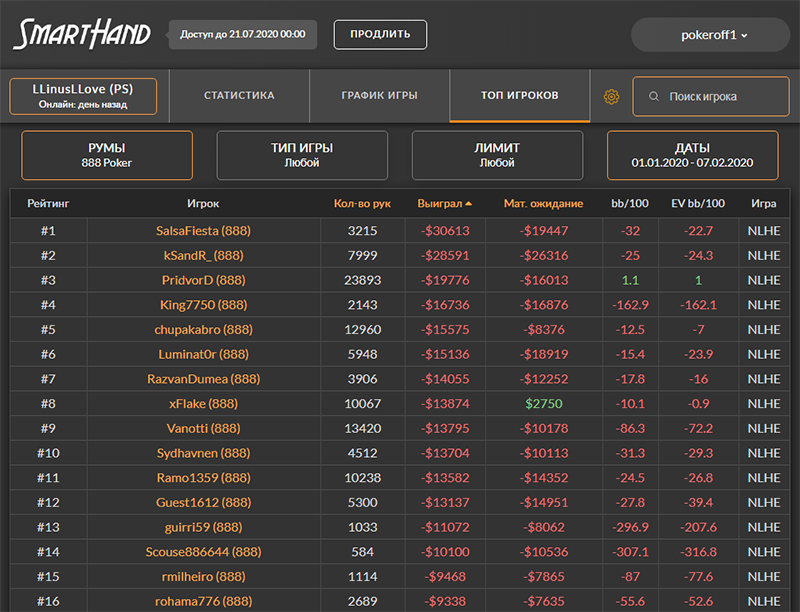 Полезная информация для игроков, предпочитающих кэш, а не турниры. Сервис Smart Hand продолжает удивлять. На сей раз мы решили узнать, кто больше всех минусовал на 888poker в январе 2020.