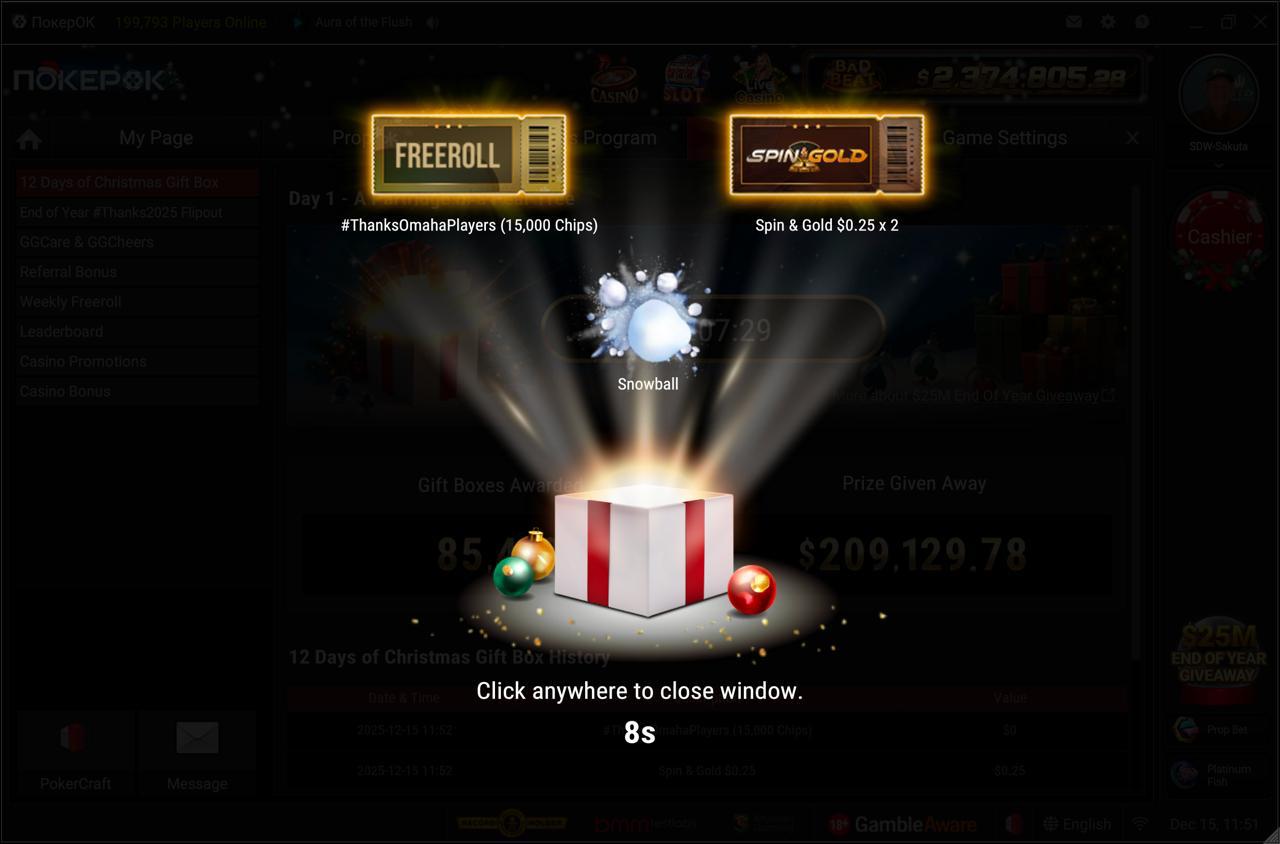 ПокерОК: $12M Days of Christmas Gift Boxes + $1M End of Year Thanks2025 Flipout