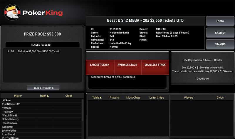 PokerKing разыграет 15 пакетов по $3,000 каждый в сателлите $95 Beast & SnC Moneymaker Tour, который стартует 10 июня в 01:05 МСК.