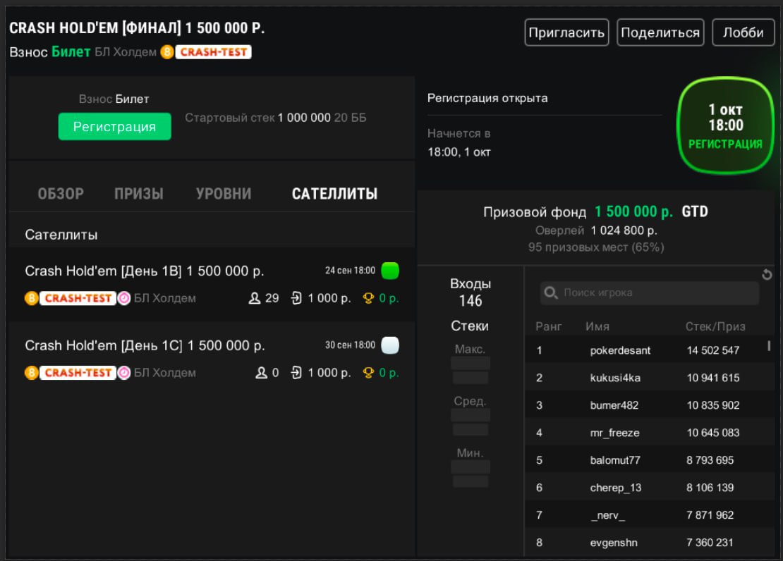 Для День 1 ежедневно проходит сателлит за ₽60 — он стартует в 20:00.