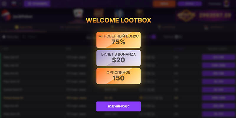 Для получения бонуса на JackPoker, нужно зарегистрироваться в руме, сыграть в мини-игру Welcome Lootbox и внести депозит.