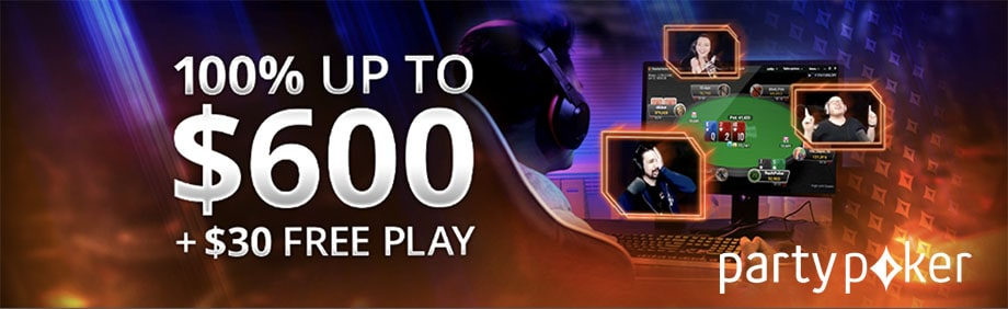 partypoker: 100% до $600 + $30 билетами и P$ (недоступно игрокам из России, Беларуси и Украины)