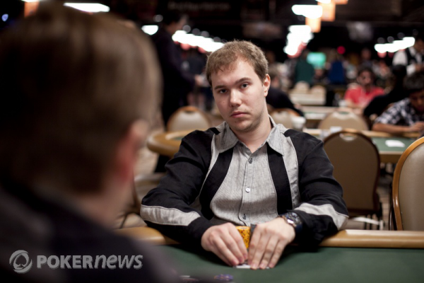 Александр Кравченко удвоил стек до 140,000 фишек выиграв коин-флип с карманной парой двоек против A♣ T♠ соперника при открытых на столе 7♣ J♦ Q♠ 5♣ J♠.